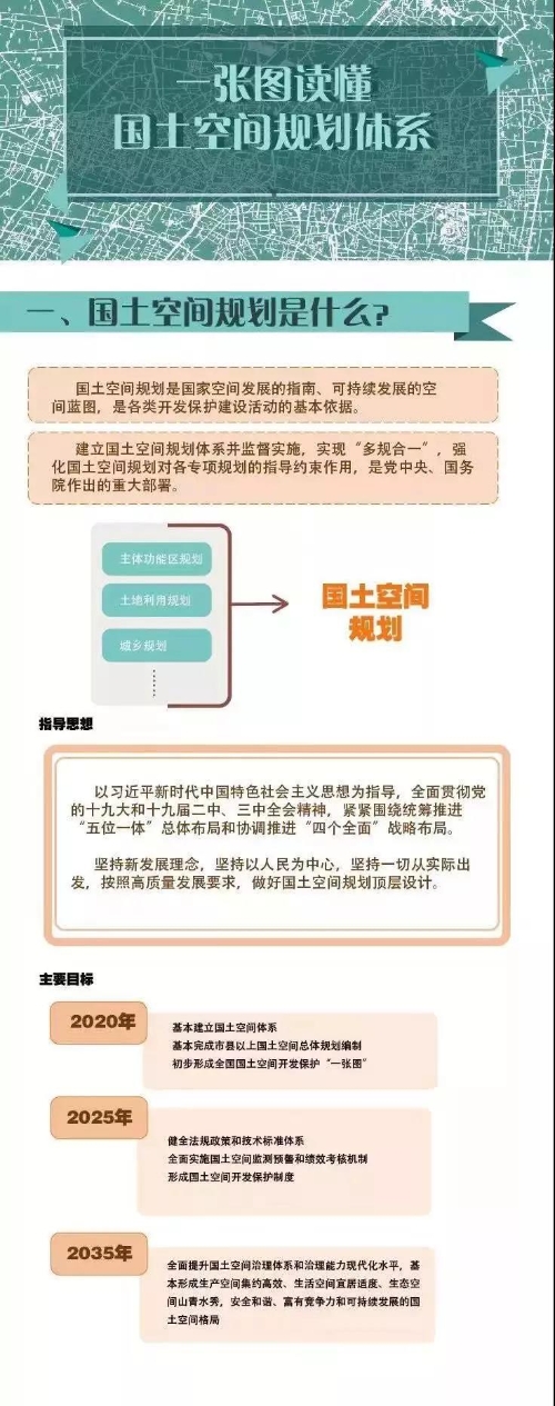 2019年党中央、国务院正式印发的18号文件明确提出,建立国土空间规划体系并监督实施,将主体功能区规划、土地利用规划、城乡规划等空间规划融合为统一的国土空间规划,实现“多规合一”。