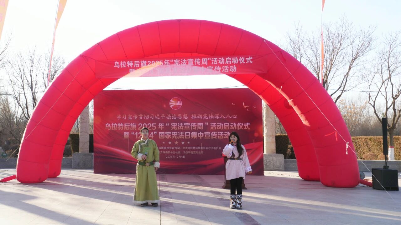 12月4日,乌拉特后旗2025 年“宪法宣传周”暨“12•4”国家宪法日集中宣传活动在呼格吉勒广场举行。活动以学习宣传贯彻习近平法治思想为主线,推动宪法深入人心,在全社会掀起学宪法、尊宪法、守宪法的热潮。