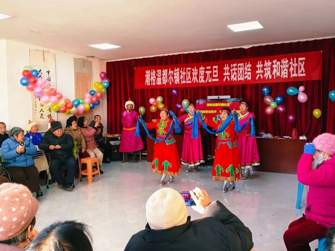 连日来,呼和温都尔镇多个社区陆续开展多种形式主题活动,庆祝新年的到来。在新惠社区,社区居民带来了舞蹈、二人台等节目,现场气氛热烈非凡。在新利社区的“寒冬送温暖 点亮‘微心愿’”民生关爱活动中,工作人员将爱心物资一一送到困难群众手中,让大家切实感受到冬日里的温暖。