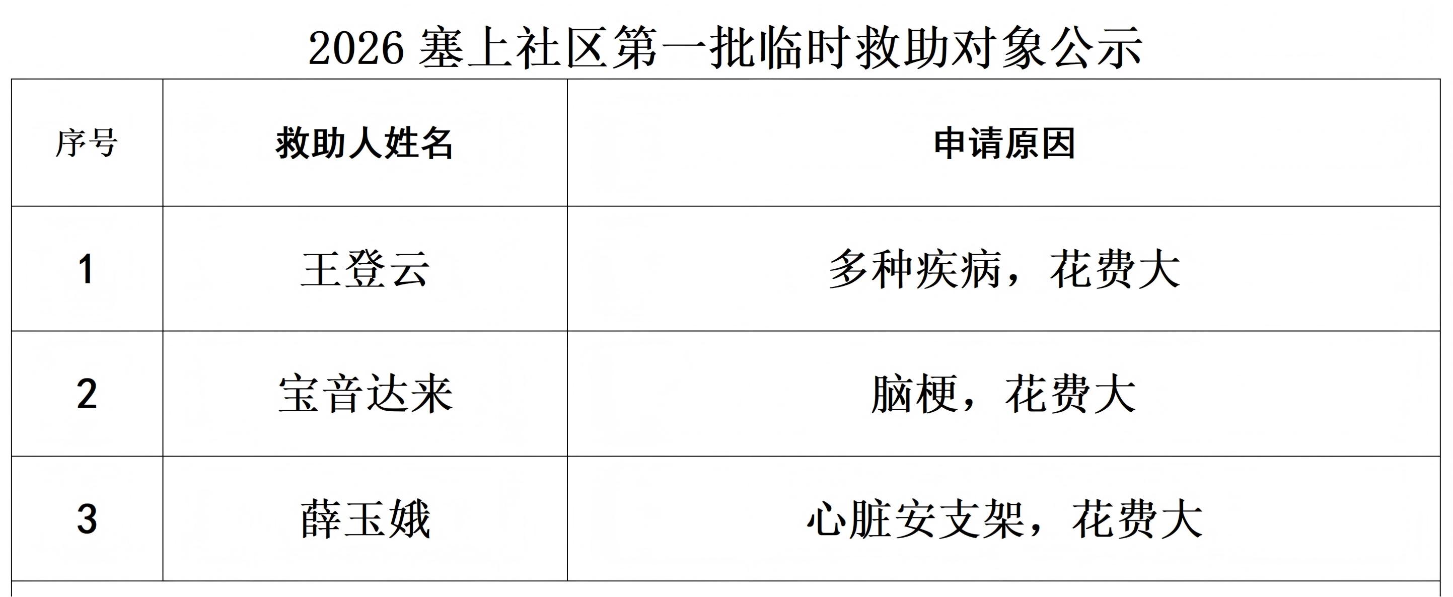 【塞上社区】巴音镇塞上社区第一批临时救助对象公示