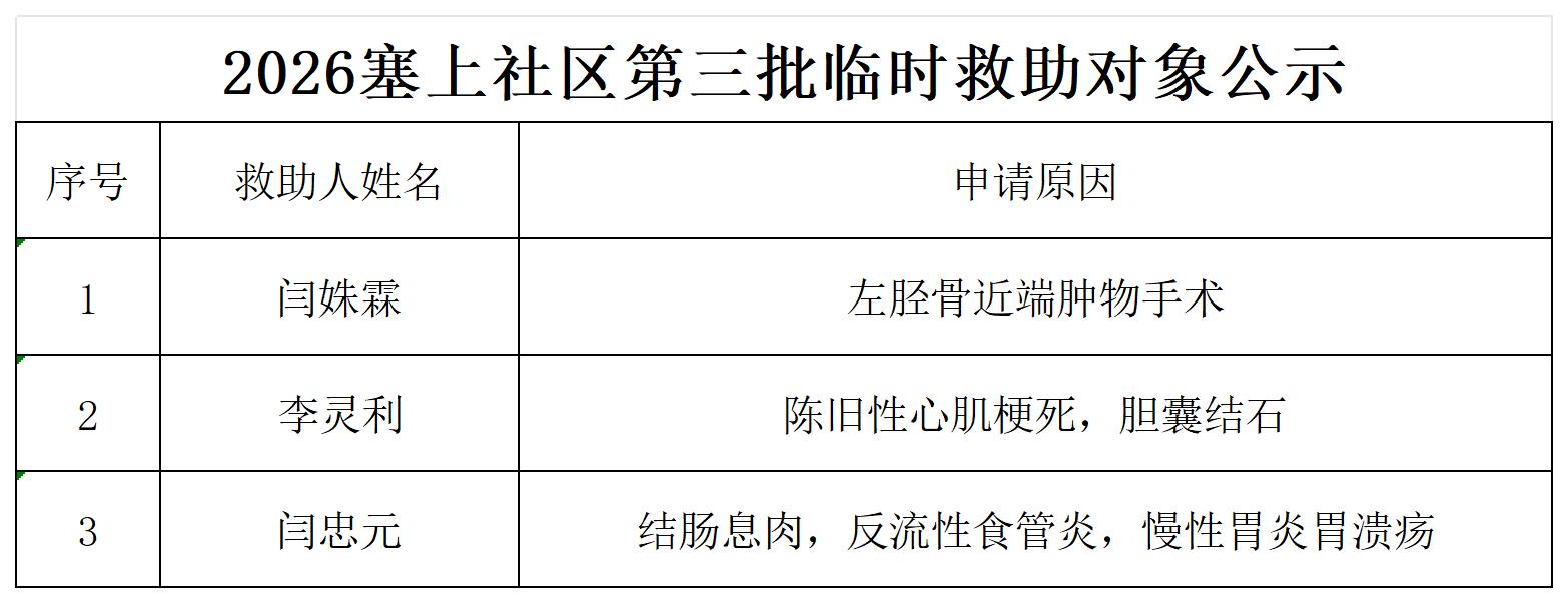 【塞上社区】巴音镇塞上社区第三批临时救助对象公示