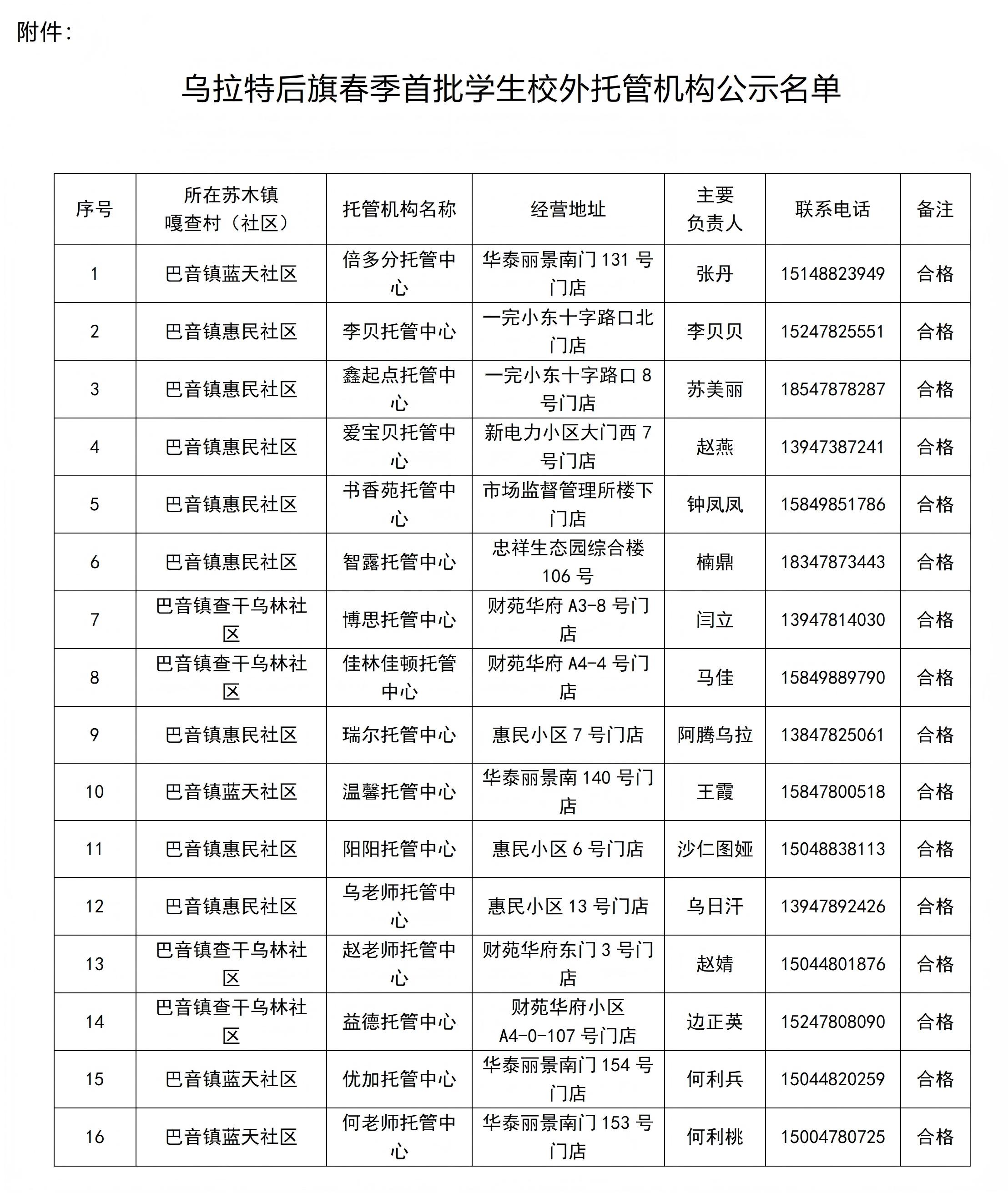 附件:乌拉特后旗春季首批学生校外托管机构公示名单