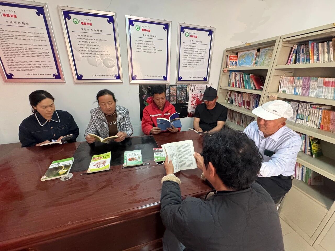 记忆里的农区闲暇,是乡亲们围坐在一起闲谈、打牌,日子淳朴却也带着几分单调。但这一次探访,我看到的是另一番模样——曾经的闲谈场,变成了书屋的阅读角;曾经用来消磨时光的碎片,变成了捧书细读的专注。草原书屋,就像一束微光,悄悄照亮了村民的日子,也悄悄改变着这里的一切。