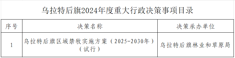 乌拉特后旗2024年度重大行政决策事项目录
