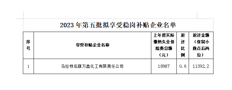 附:2023年第五批拟享受稳岗补贴企业名单