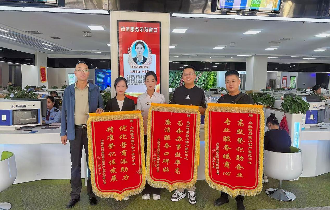三面锦旗既是对乌拉特后旗不动产登记中心“以服务破难题、以效率助发展”的肯定,更是其践行“营商环境优化年”要求的体现。未来,乌拉特后旗不动产登记中心将以此为新起点,持续聚焦企业办事“痛点、难点、堵点”,进一步优化流程、完善“一企一策”机制,用更专业高效的服务为企业扫清障碍,为全旗营商环境升级贡献力量。