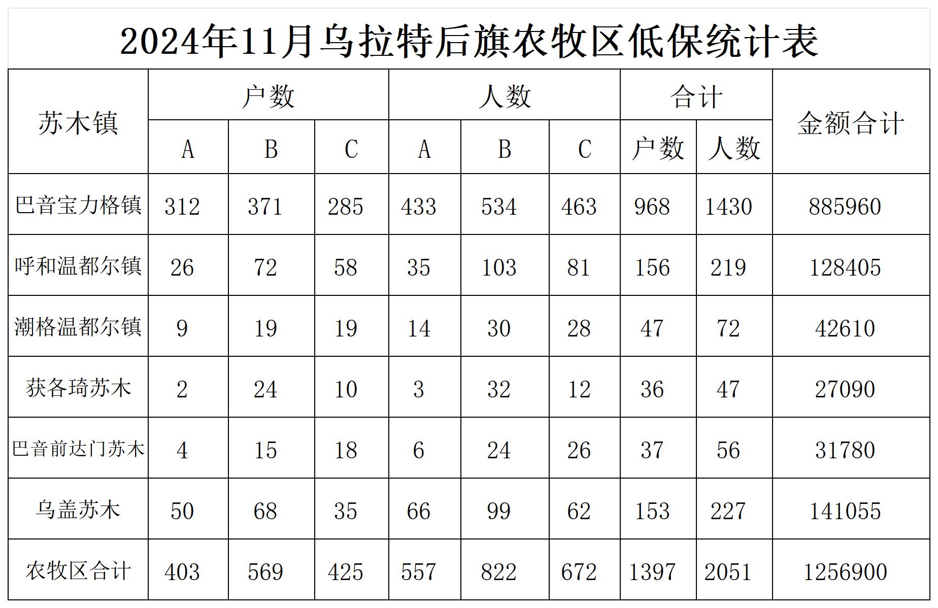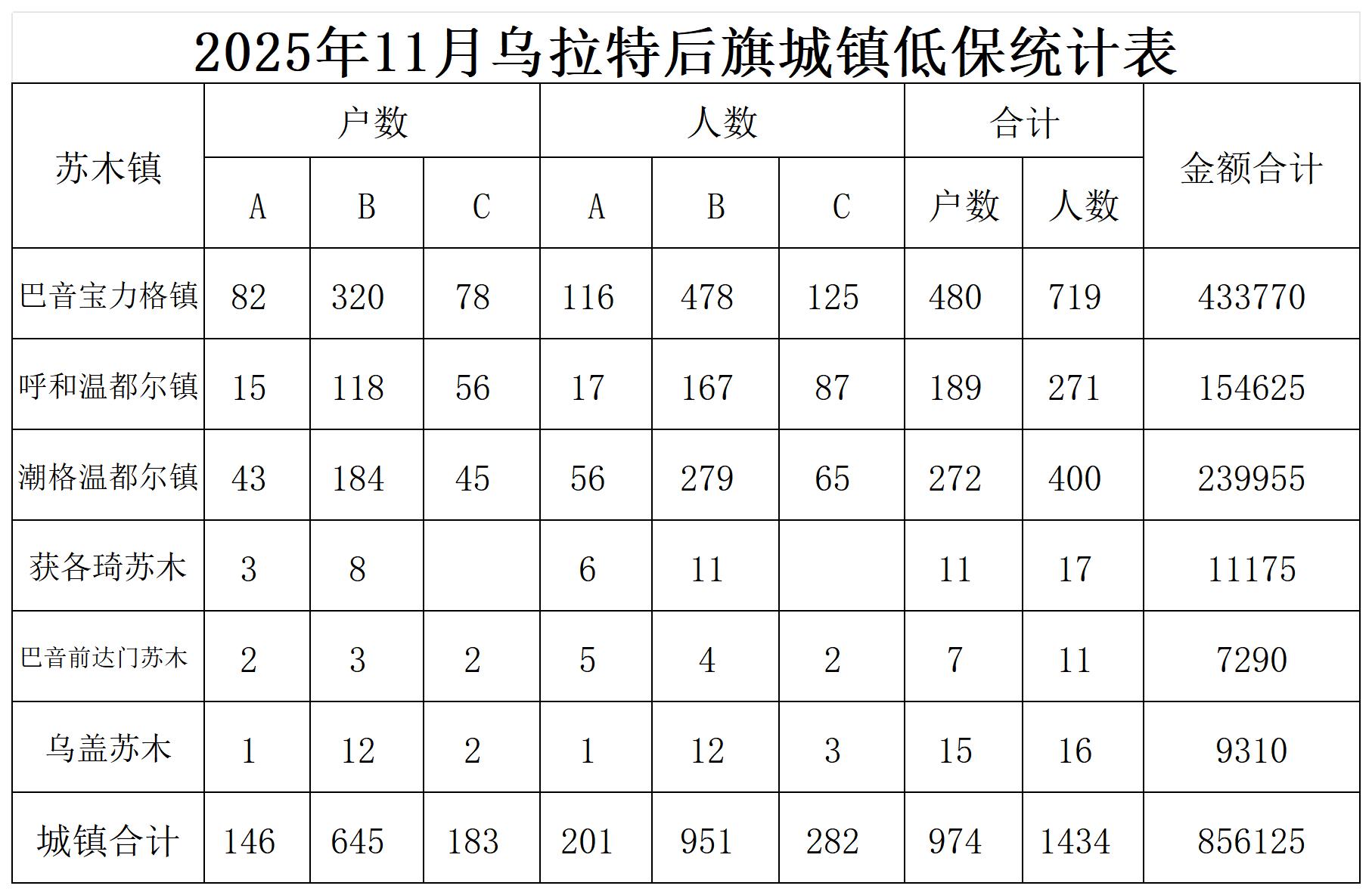 乌拉特后旗2025年在享低保统计表