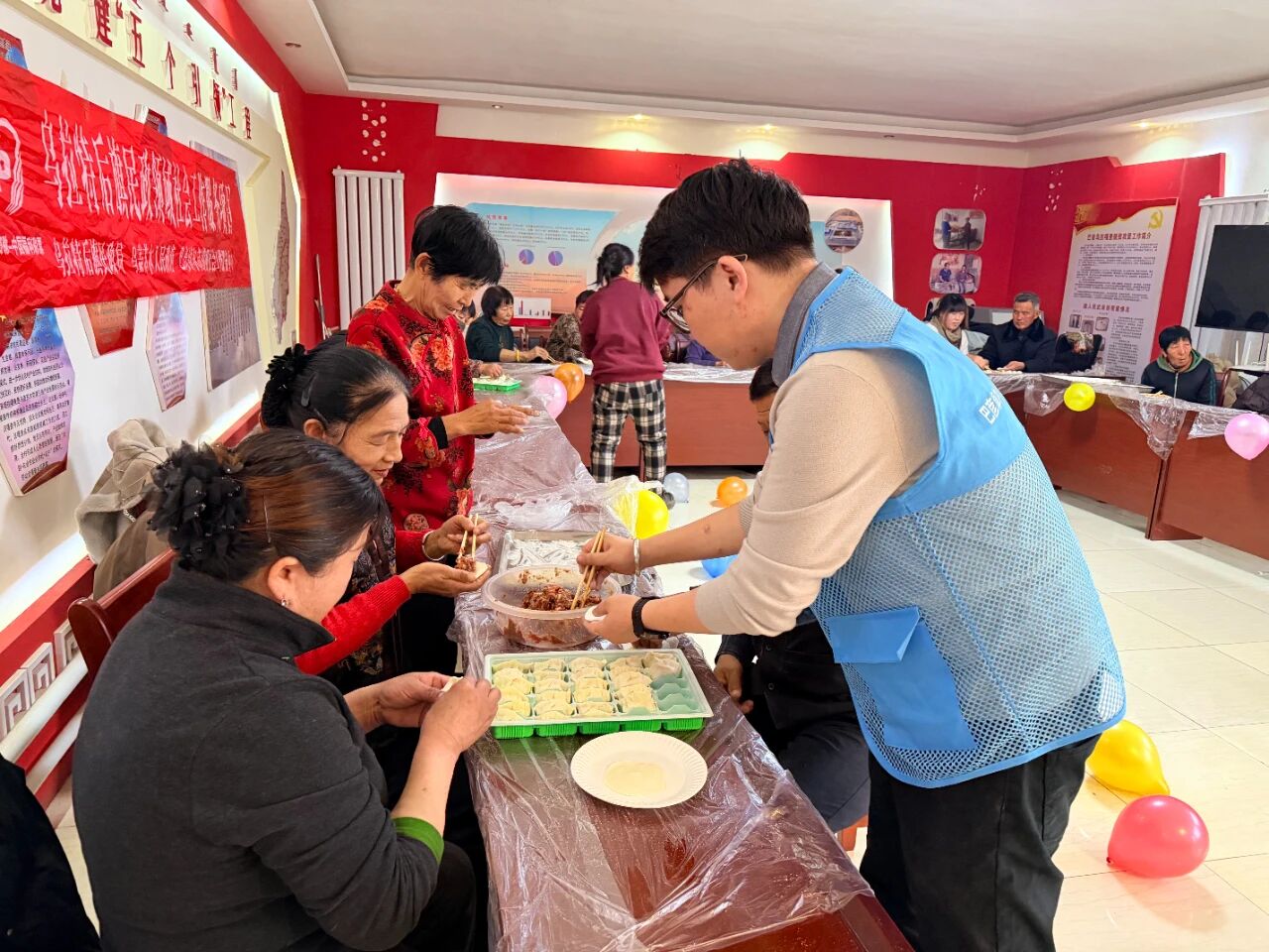 不多时,一个个圆润饱满、饱含心意的饺子便摆满了餐桌。社会工作者们迅速将刚包好的饺子分装打包,兵分多路穿梭在嘎查的巷子中。84岁的独居老人张爷爷家是此行的第一站,当温热的饺子和慰问品递到老人手中时,他激动地说:“屋里暖,饺子更暖!你们来了,才算真真切切过了个节。”简单的话语,道出了老人内心深处的期盼与感动。