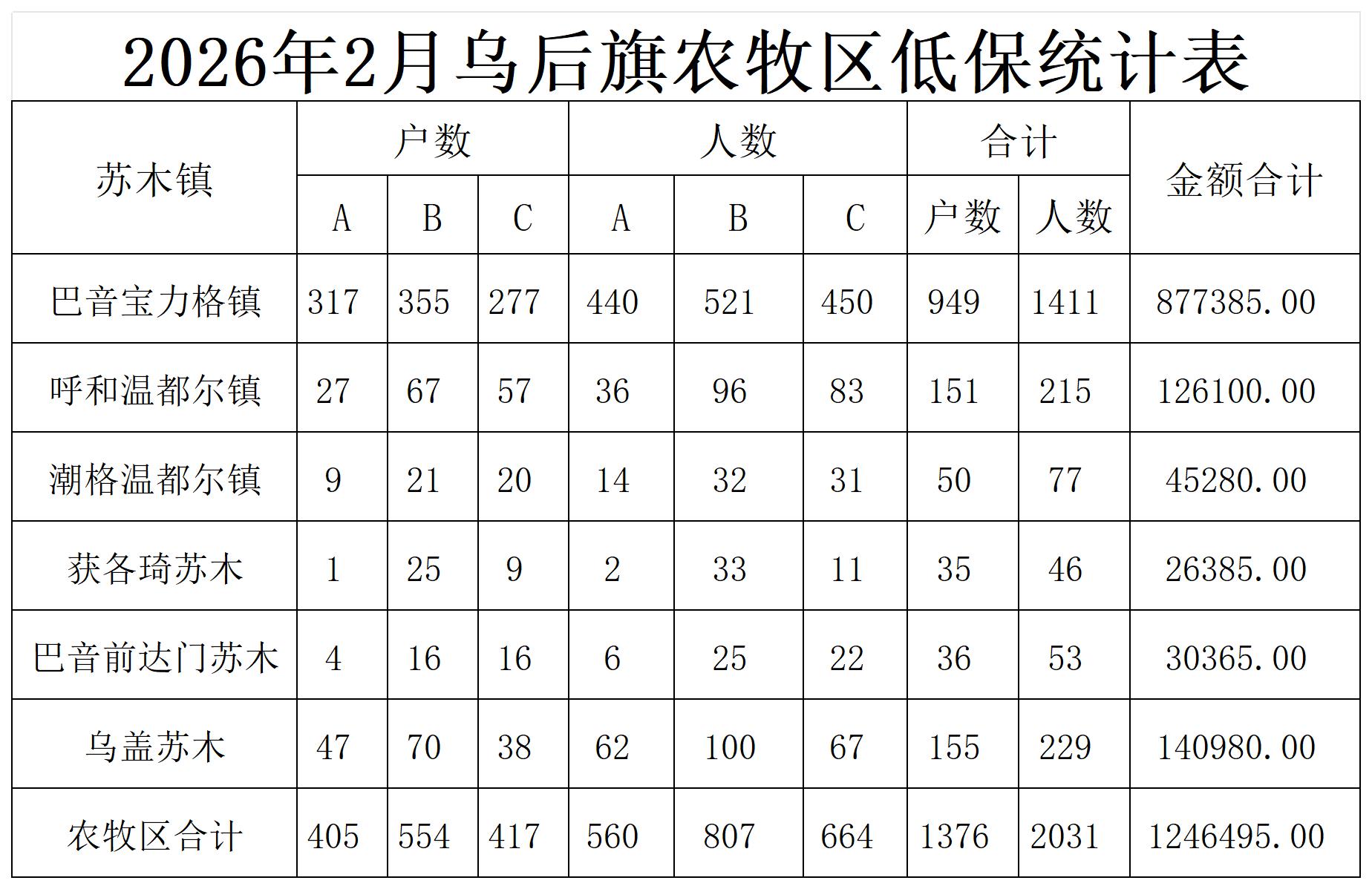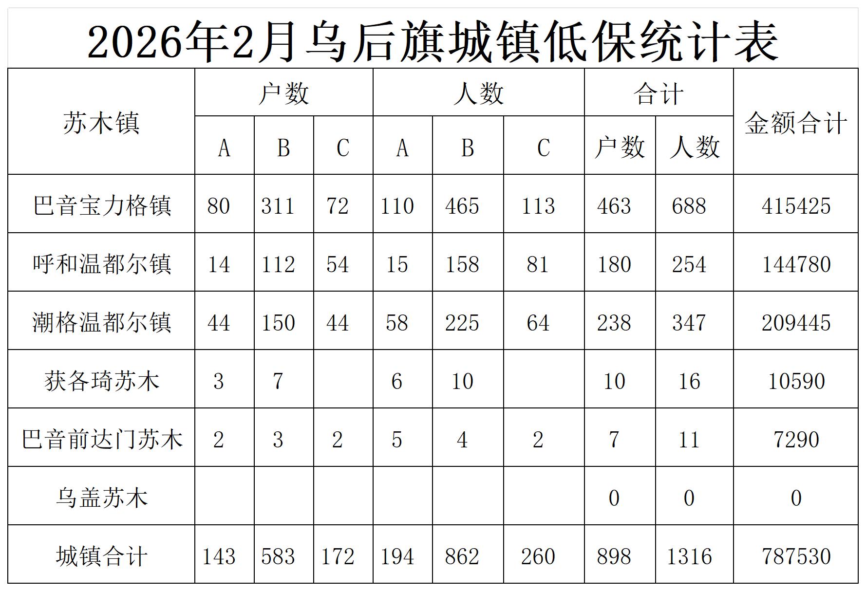 乌拉特后旗2026年在享低保统计表