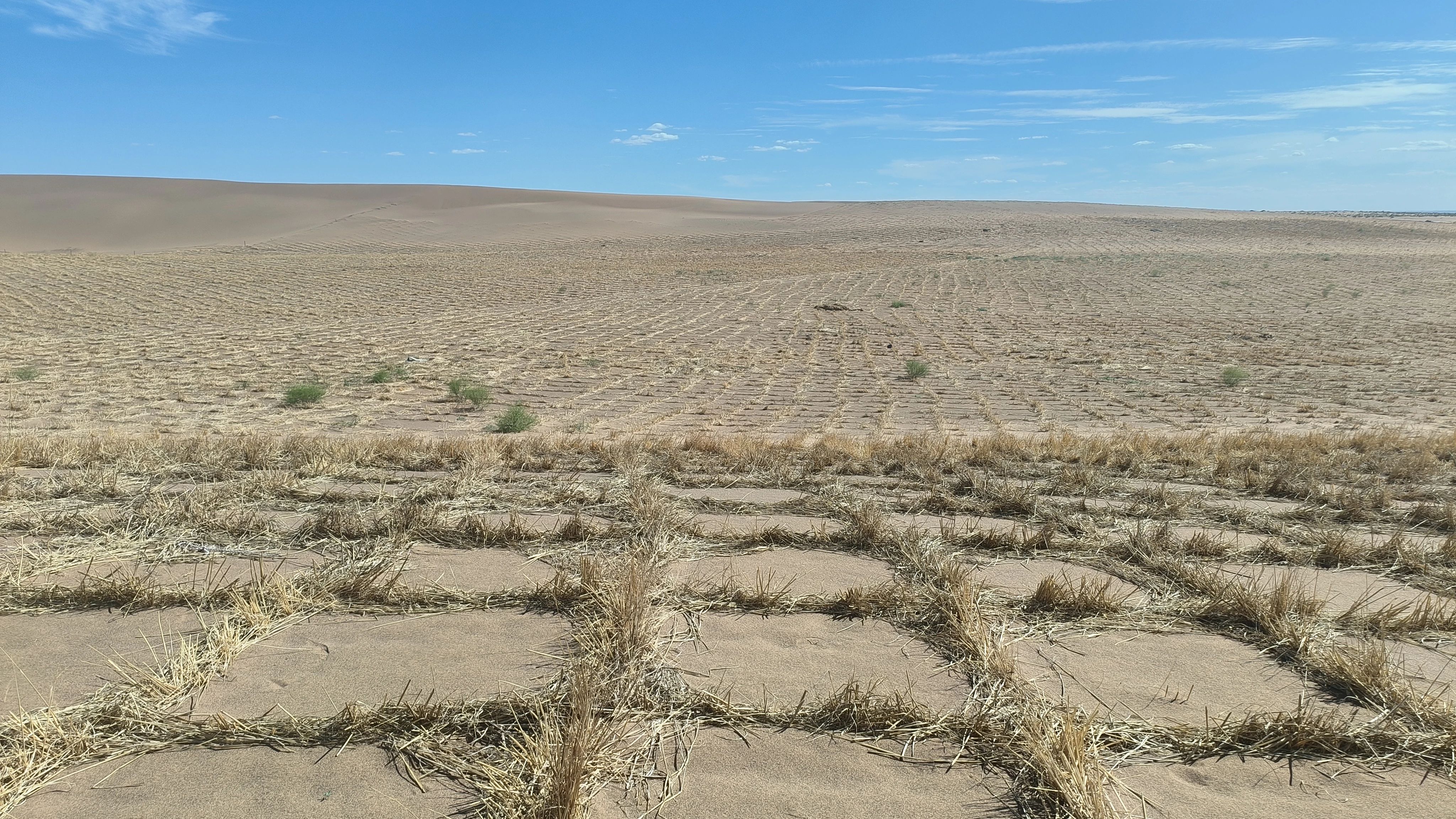 “三北”工程六期在巴音温都尔沙漠铺设的压沙障