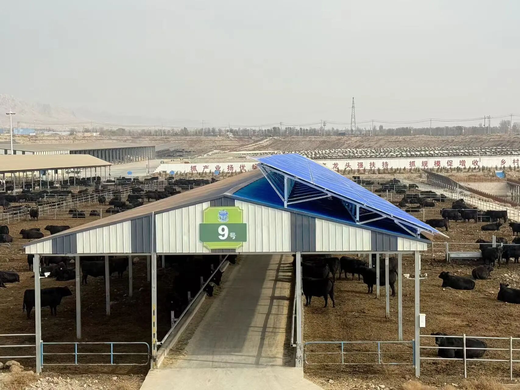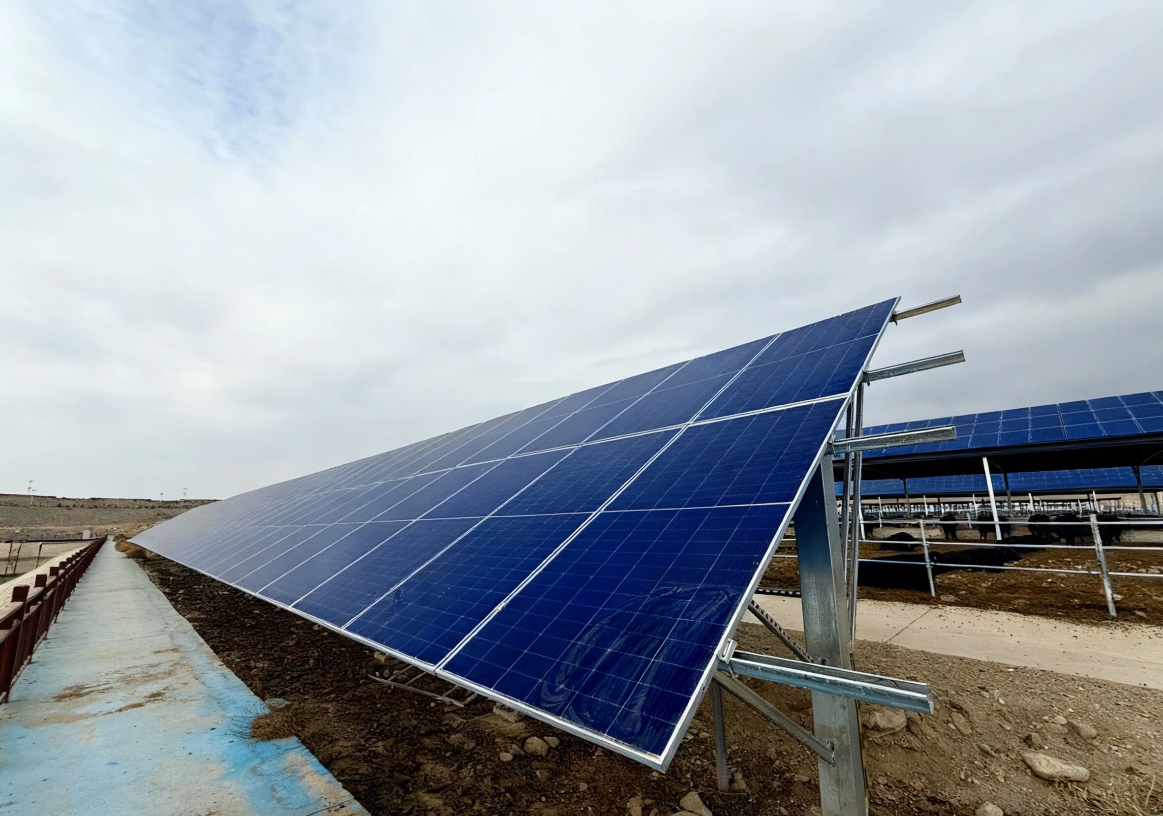 走进乌盖苏木和丰村光伏帮扶电站,蓝色的光伏板在阳光下熠熠生辉,实时跳动的发电量数据在显示屏上清晰呈现,一幅 “阳光变财富” 的生动图景正徐徐展开。“我们充分利用闲置的托牛所屋顶和空地,实现了‘棚上发电、棚下养牛’。”和丰村党支部书记李光荣指着电站介绍道。