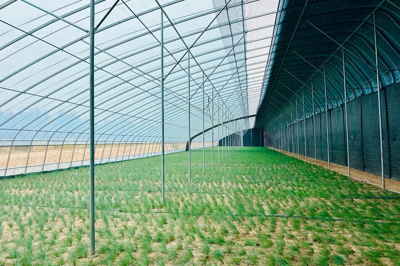 十一月,北疆大地已渐披寒霜。在乌拉特后旗呼和温都尔镇西补隆嘎查的沙葱种植基地大棚内,却依然绿意奔涌、生机盎然。一垄垄沙葱根根挺秀,叶色翠润,工人们正忙着进行田间管护。棚内温润的空气中,裹挟着沙葱特有的清香,也润泽着丰收的“金色希望”。