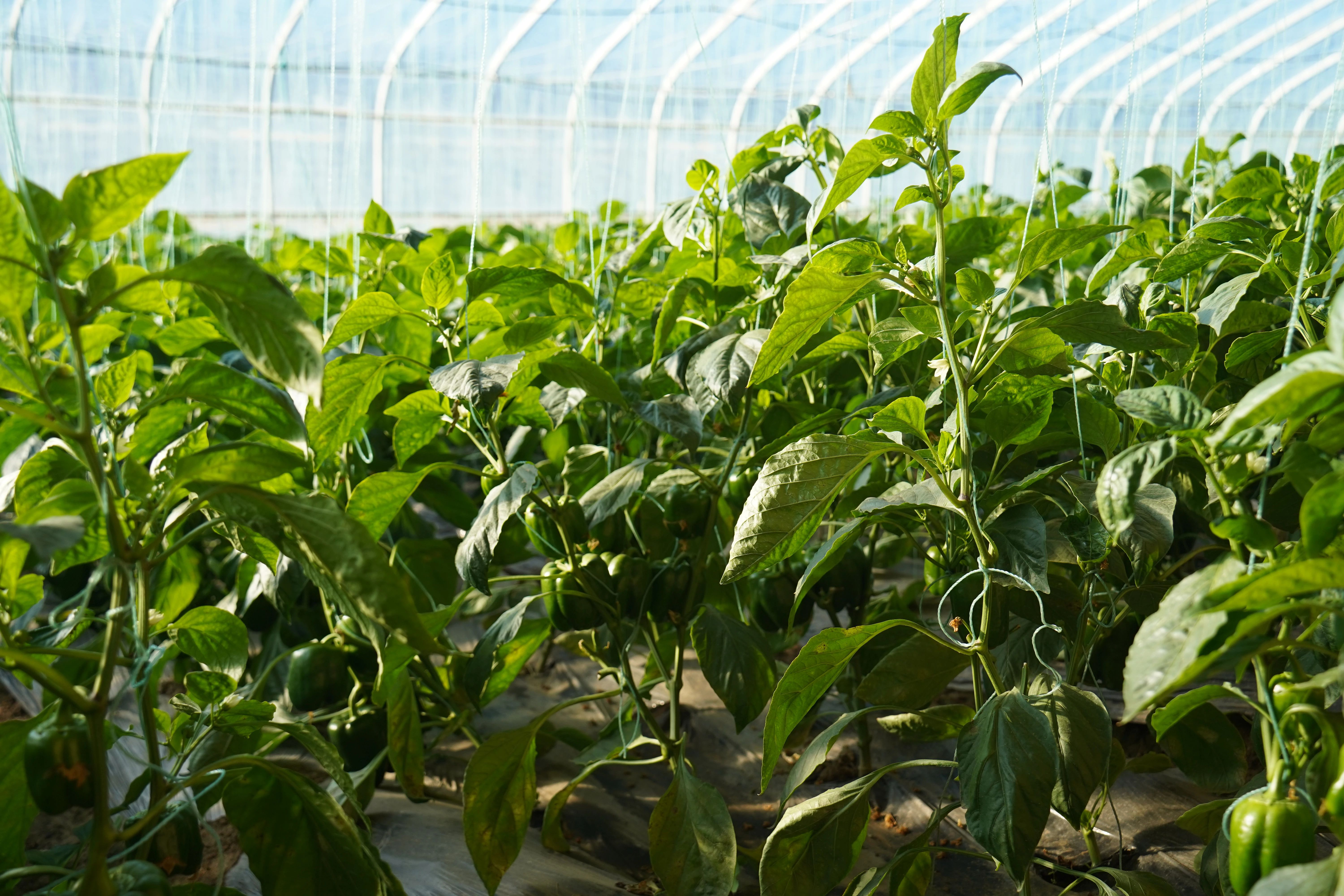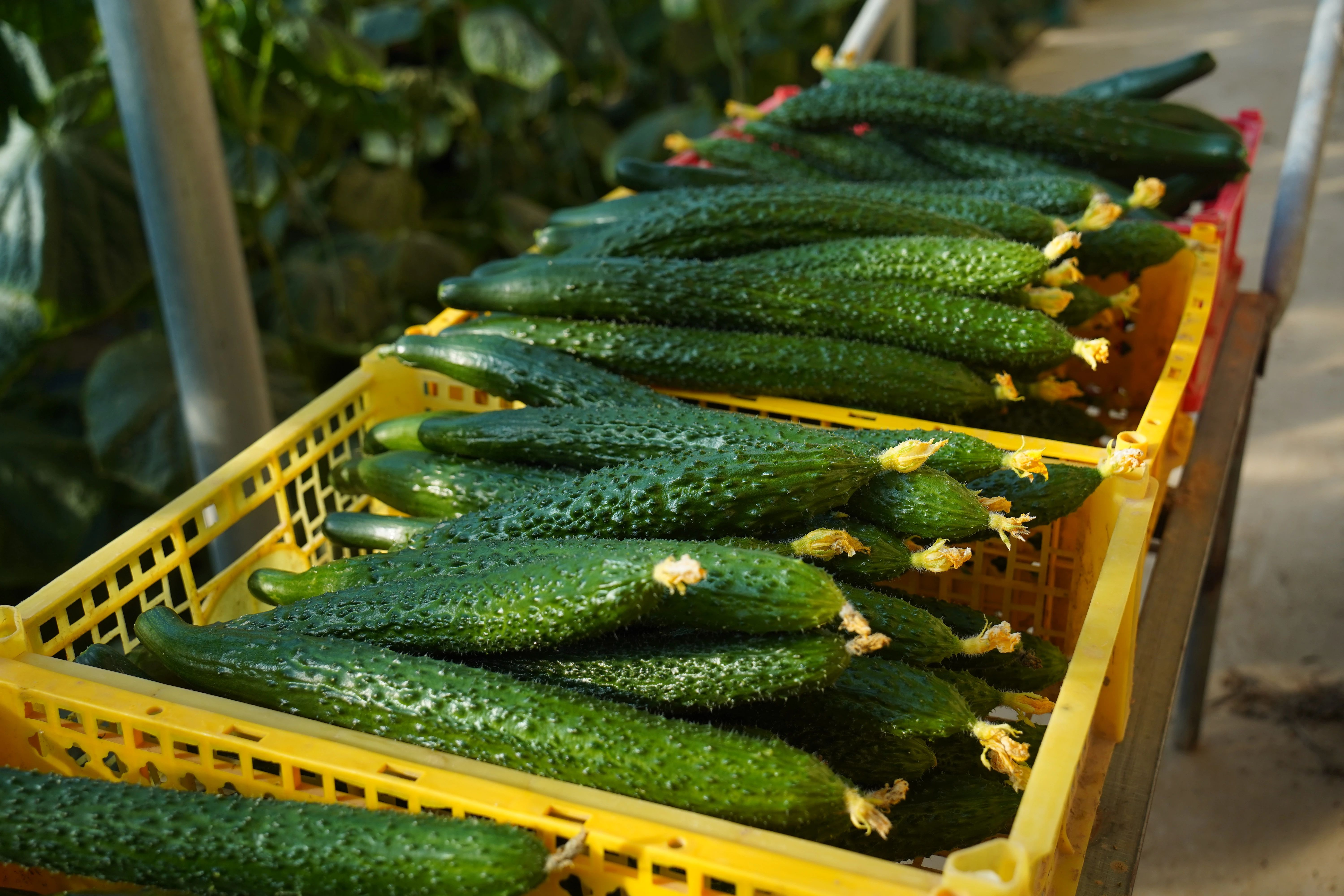 初冬时节,走进乌拉特后旗国际农业博览园二期大棚,一股温润的气息裹挟着果蔬的清香扑面而来,连片的藤蔓顺着支架向上攀爬,巴掌大的绿叶层层叠叠,黄瓜嫩条顶着黄色小花,连泥土里刚冒头的菜苗都透着鲜亮的绿,整个大棚仿佛被“泼” 了一层生机盎然的绿颜料。