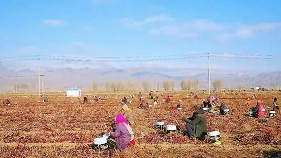 巴音宝力格镇团结村标准化椒田内农民喜获丰收