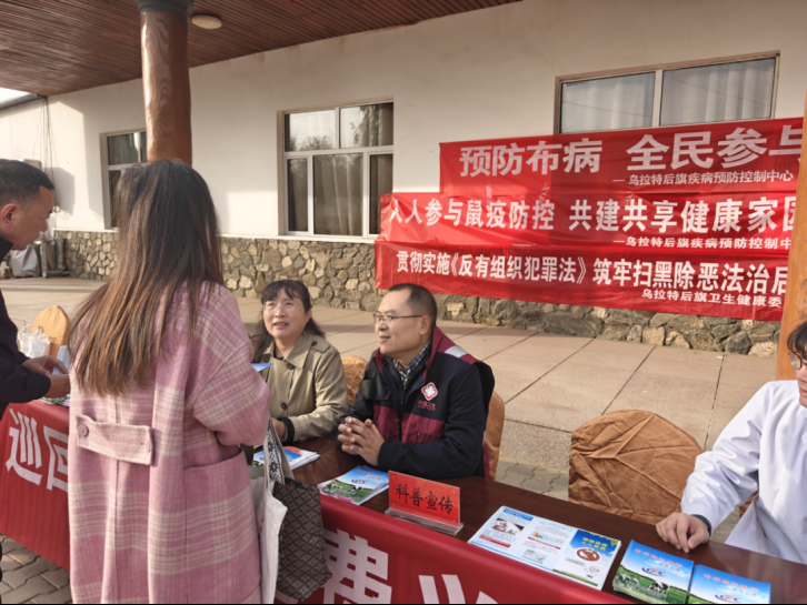 乌盖苏木和丰村:通过悬挂宣传条幅、发放宣传资料等方式,向老人普及布病防控、鼠疫预防相关知识,引导老人关注自身健康,增强自我保护意识,改善生活方式。工作人员还为居民免费测量血压,发放宣传手册、健康小礼品等。