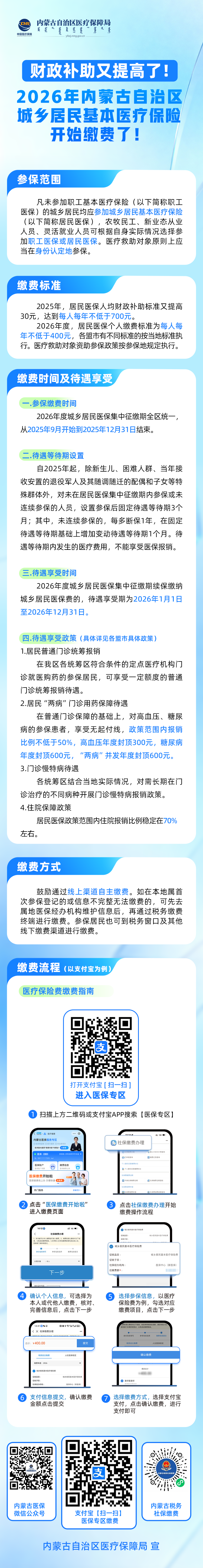 2026年内蒙古自治区城乡居民基本医疗保险开始缴费了