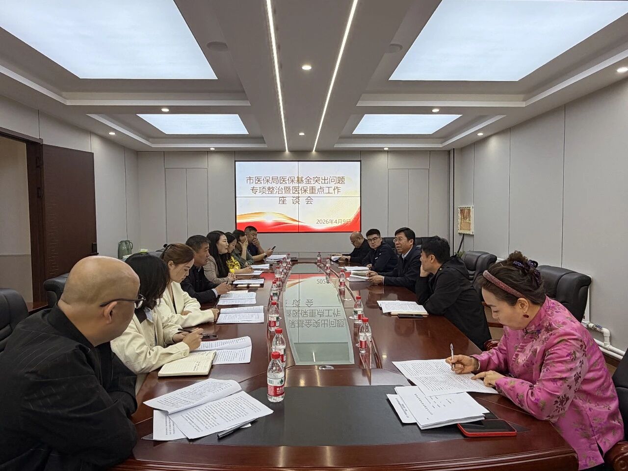 为精准掌握基层医保基金专项整治进展及一季度医保重点工作推进落实情况,全面摸清当前工作短板弱项,靶向破解业务推进堵点难点,持续夯实医疗保障民生根基,4月9日,市医保局局长姜元文、规划财务与基金监管科科长杨宇、基金监测中心工作人员陈旭一行到乌拉特后旗医疗保障局,专项调研督导医保基金专项整治和一季度医保重点工作开展情况。政府副旗长王砚随同调研,旗医保局局长格日乐图雅等班子成员及各股室、医保服务中心负责人参加调研。