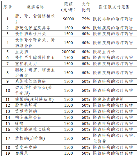 备注:所有慢性病患者的辅助用药、营养用药和检查费用等均不在医保支付范围。