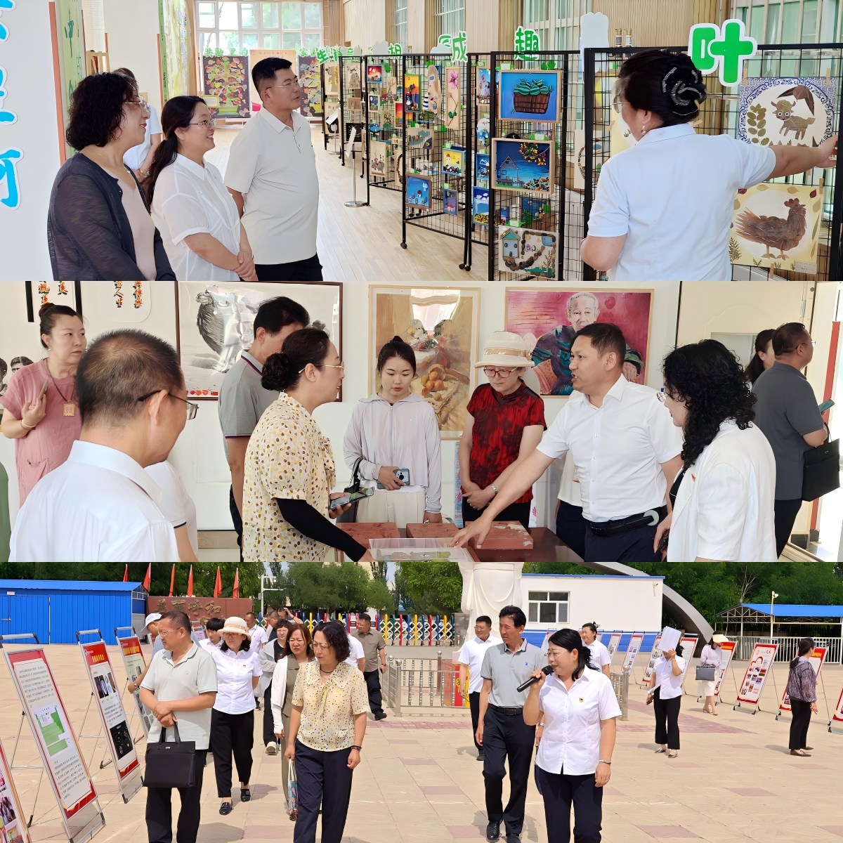 各学校主动亮家底、晒成果。第一中学落实“逐光”教育理念,建设高质量教师队伍,夯实学校健康发展根基;第二中学秉持“树人”办学理念,在面向全体的基础上注重运用“非遗”传承,促进学生特色成才;一完小以“根”课程体系为载体,着力培实文化传承精神根系,遵循“从具象观察到抽象表达”的艺术规律,构建“自然认知—技能训练—文化解码”三阶育人路径;二完小依托国家智慧教育平台、中央电教馆教研共同体打造“智慧课堂”,实现国家课程校本化实施,为北疆边陲少年奠定了坚实的素养基础;三完小“周末妈妈”项目为留守儿童织密亲情网络,以陪伴与关怀传递“真爱”;呼和镇学校开发“和乐”校本课程,利用玉米秸秆、种子、树籽、葫芦等原生态素材创作,传承非遗文化,彰显乡镇教育特色。各校特色课程与校园文化如繁花绽放,一校一品各美其美,共同勾勒出乌拉特后旗义务教育优质均衡发展的生动图景。