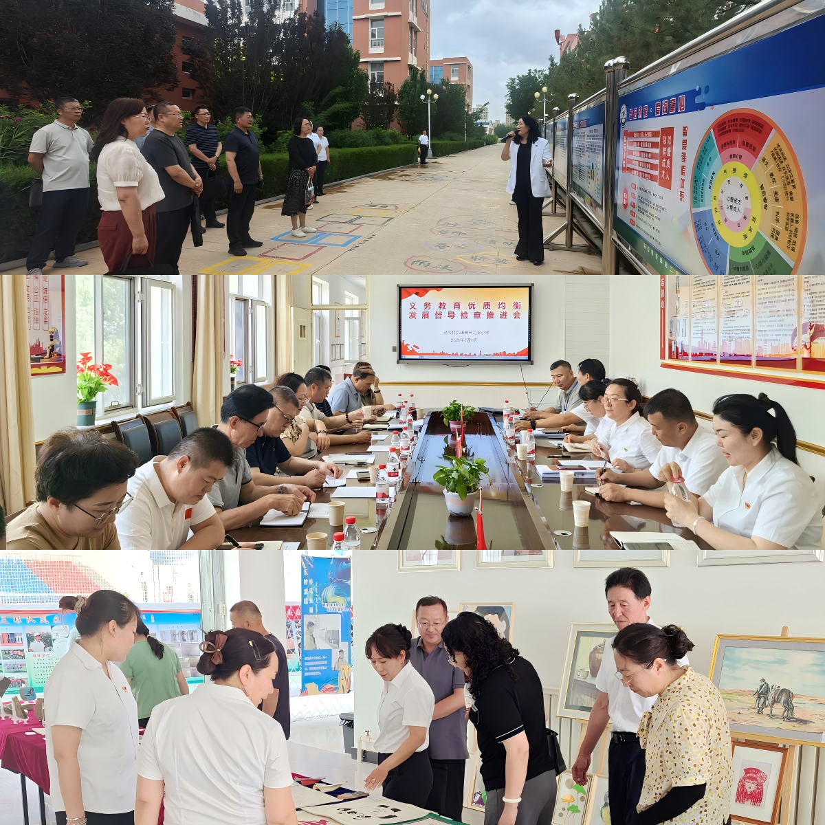 为进一步做好义务教育优质均衡发展迎检工作,乌拉特后旗于6月30日至7月2日组织开展了迎检模拟演练。教育局党组书记、局长亲自挂帅,党组班子成员任副组长,组建由局机关股室、二级中心骨干力量组成的督导团队,分成设施设备组、巡课访谈组、档案资料组和综合观察组等4个专项督导组,通过“看现场、听讲解、查档案、听汇报、巡课堂、访师生、作反馈”,严格对标指标体系和国家督导评估流程,对全旗6所中小学开展全覆盖模拟演练。