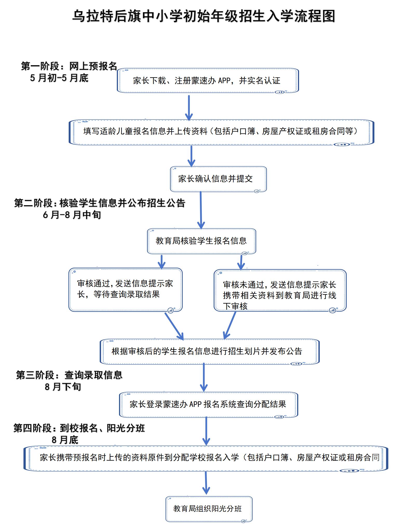 乌拉特后旗中小学初始年级招生入学流程图