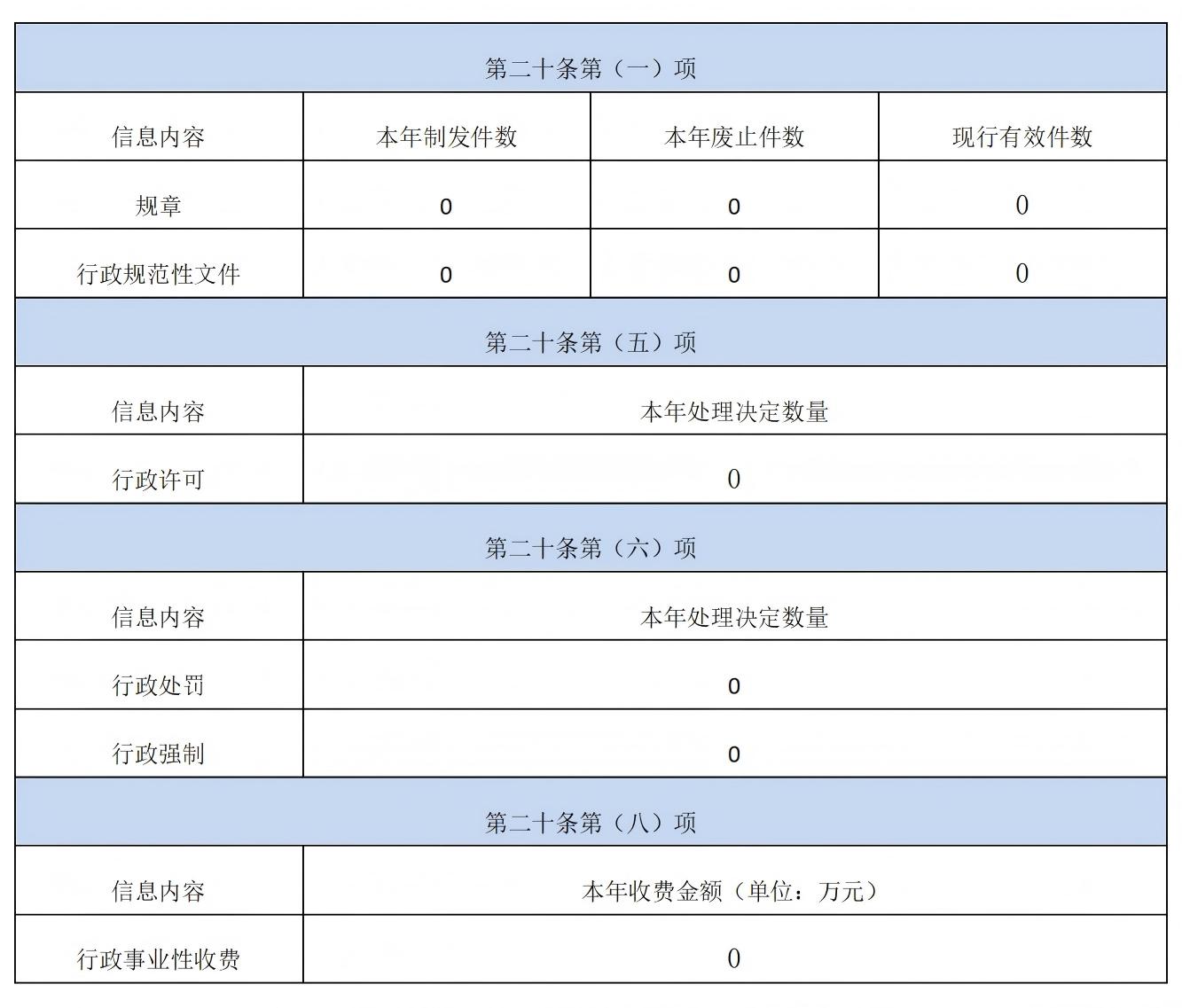 按照《国务院办公厅关于印发〈政府信息公开信息处理费管理办法〉的通知》(国办函〔2020〕109号)规定的按件、按量收费标准,本年度没有产生信息处理费;无其他需要报告事项。
