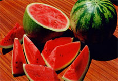 西瓜是河套地区的主要经济作物,以个大、味甜、多汁、爽口远近闻名。一般每个西瓜在3公斤--5公斤之间,最大的有10公斤。由于河套地区气候条件独特,西瓜的含糖量高达12%,是人们夏季解暑止渴的瓜中佳品。