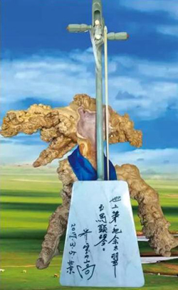 佘太翠玉主要指产自乌拉特前旗大佘太镇的玉石矿,有翠绿色、白色、青色三种基本颜色。乌拉特前旗的能工巧匠用佘太翠玉打造出世界上第一把“佘太翠玉马头琴”。以佘太翠玉打造的马头琴,声音既保留了传统木质马头琴深沉悠远的原有韵味,又增添了玉石古老清脆的原生态味道,可以说别具一番风味。 |
