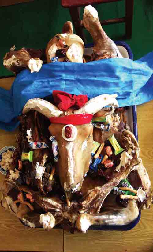 烤全羊和羊背子是内蒙古地区的传统风味名菜,也是祖辈传下来的最高形式的招待贵宾或庆典时才烹制的特色佳肴,优秀的饮食加工技术及经验造就了蒙古民族光辉灿烂的饮食文化。