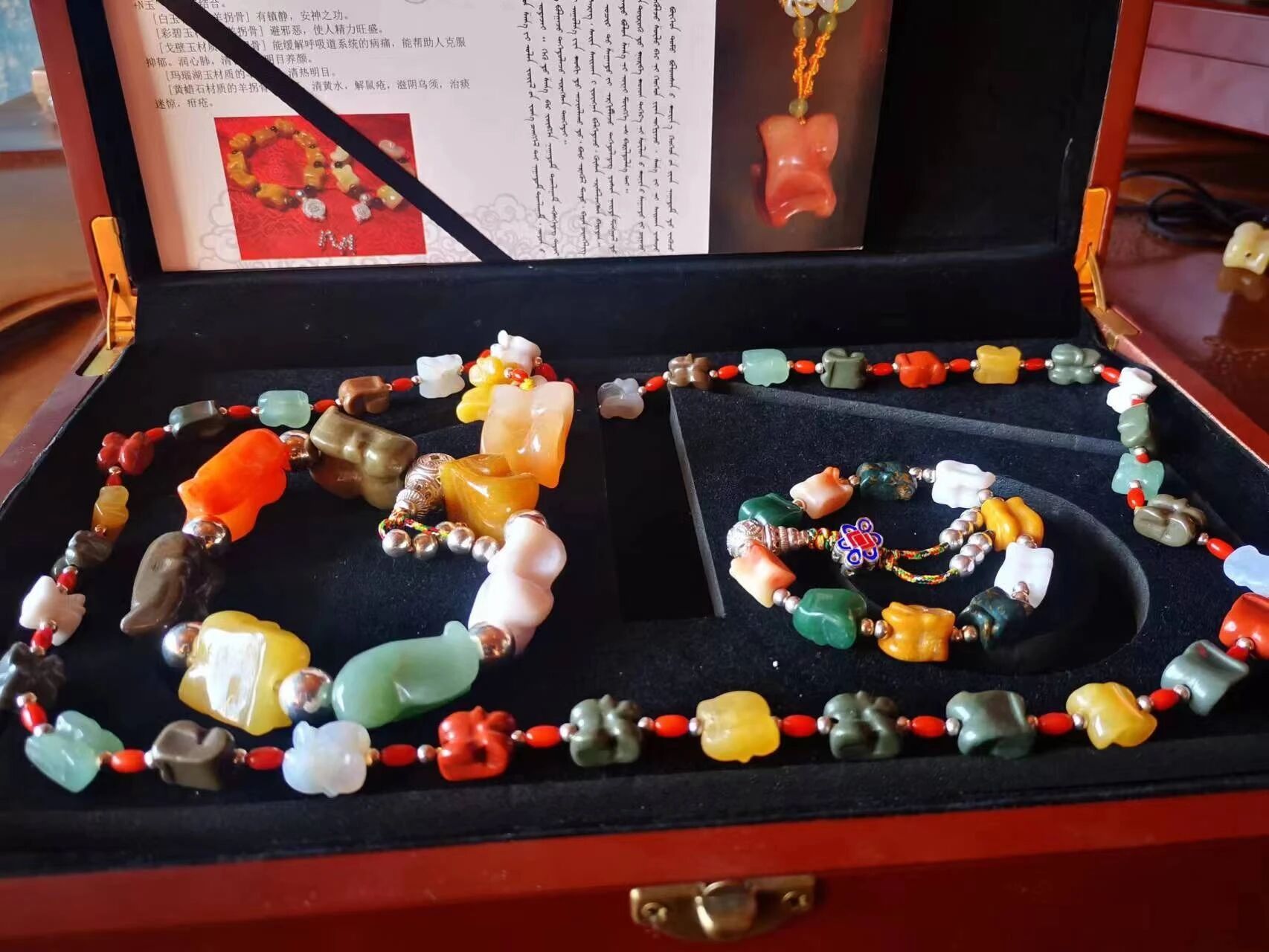 “沙嘎”俗称羊拐骨,是指羊、骆驼、牛等动物的四方形小踝骨。沙嘎被蒙古族群众誉为“人类最早的护身符”,蒙古族历来就有用沙嘎占卜的习俗,此外他们认为佩戴沙嘎有吉祥、好运的寓意,并且沙嘎在蒙古族的祭祀活动中也具有非常重要的地位,蒙古族群众认为收集的沙嘎越多,越代表五畜兴旺,家庭幸福。乌拉特后旗位于内蒙古自治区西北部,这里盛产玛瑙石、戈壁石、碧玉、硅化木、黄蜡石以及各种宝石级的矿物晶体,是名副其实的“中国戈壁石之乡”。2016年内蒙古布德民族文化发展有限公司研发的《玉石沙嘎》系列首饰、玉石沙嘎纽扣、玉石达拉等产品相继问世,这些产品以当地的黄蜡石为原材料,经过精雕细琢,做成精美的工艺品,这些产品一经上市就大量“圈粉”。