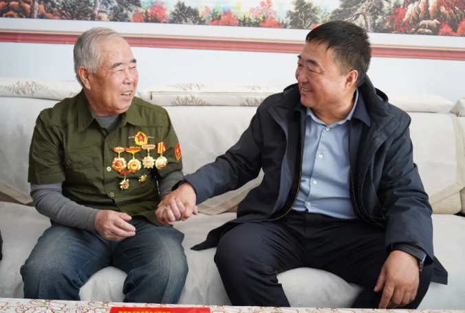 在退役军人王旺树家中,王银保与他话家常、谈变化。王银保说,退役军人是党和国家的宝贵财富,各级各部门要切实尊崇军人、关爱军人,全面落实好各项优抚安置政策。希望王旺树继续发扬革命军人的优良作风,为家乡发展建言献策、贡献力量。