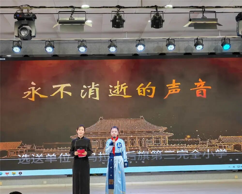 学生参加亲子朗诵比赛。 乌仁斯琴 摄