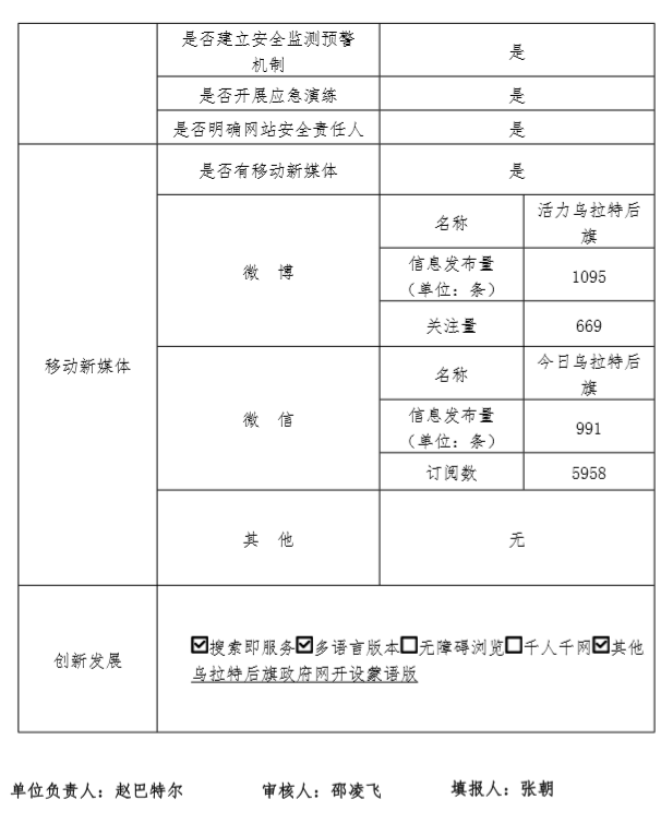 乌拉特后旗人民政府网站工作年度报表(2019年度)